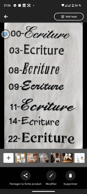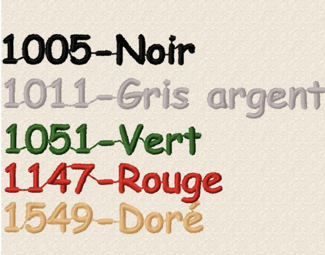 Il vous suffit de noter le numéro de la police de caractère qui vous plait. Si vous voulez nous pouvons vous fournir un aperçu du prénom que vous désirez faire broder.