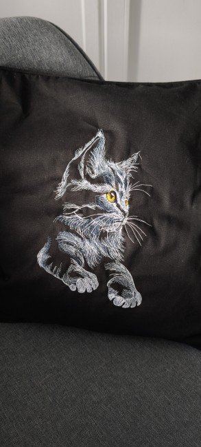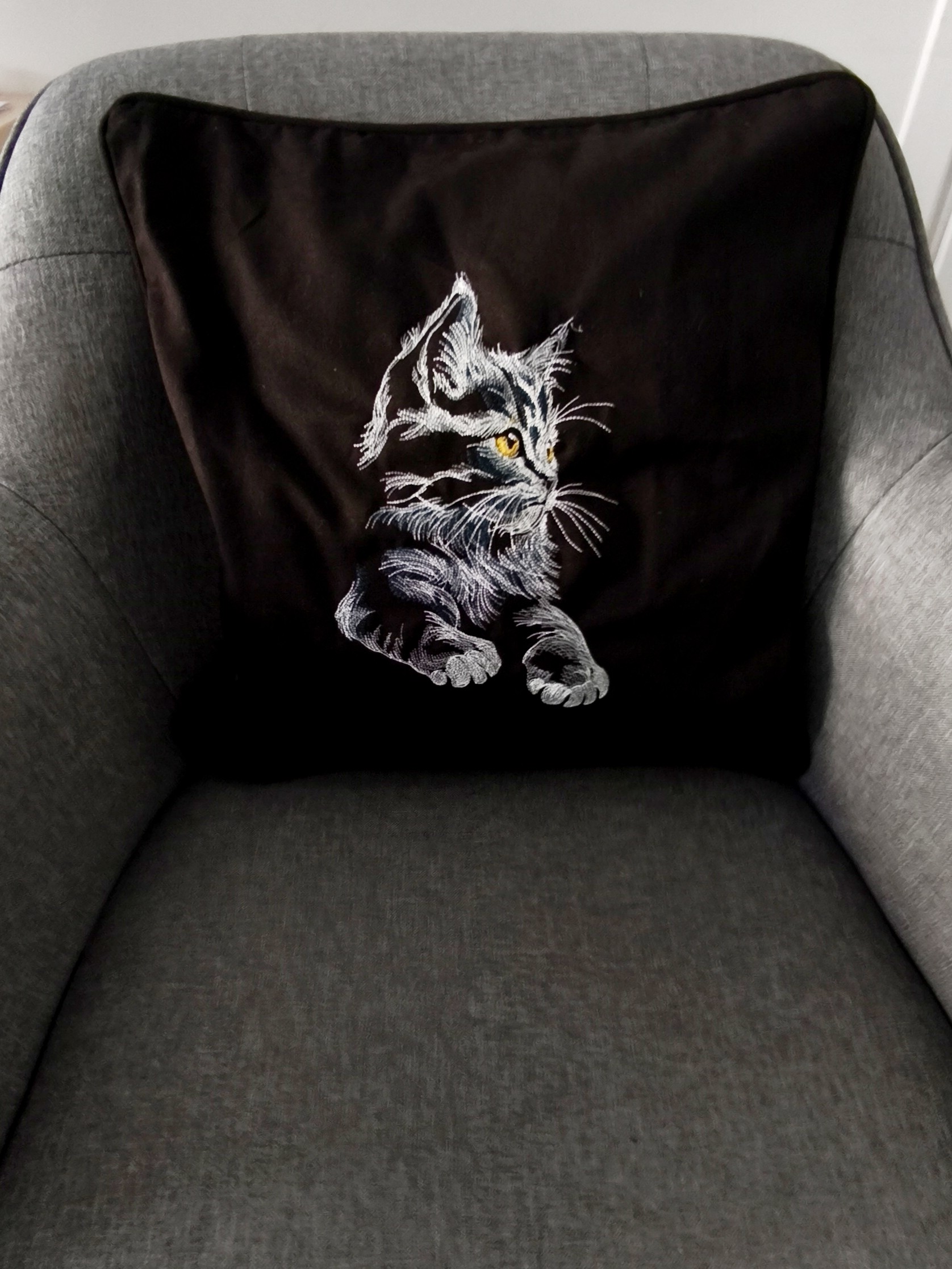 Brodée avec soin sur housse de coussin passepoilée et zippée