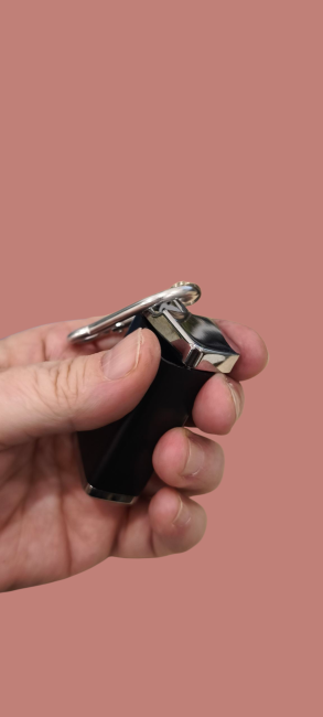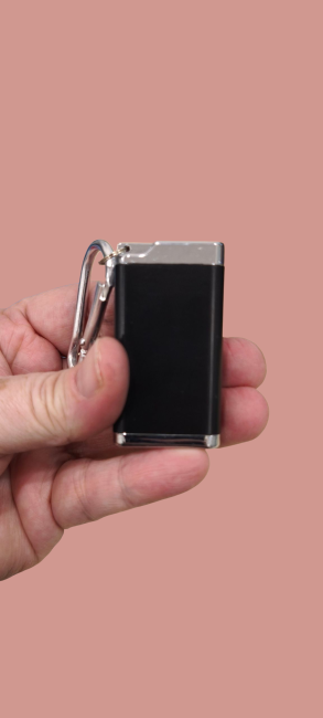Sa dimension de 3x4 cm permet grâce à son mousqueton de l'emporter partout. Son couvercle pivotant permet de bien le refermer.