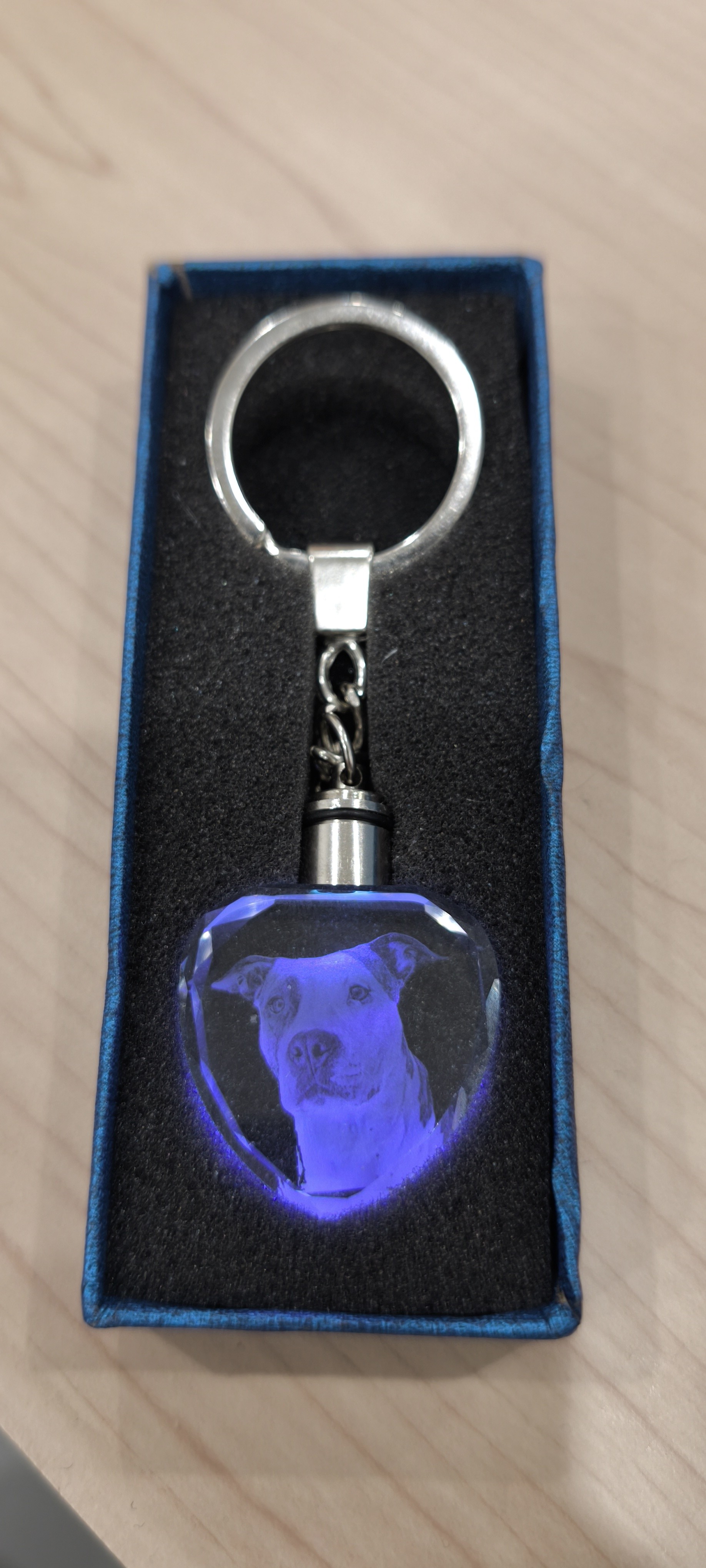 porte clé animal personnalisé, portrait animal, chien personnalisé, chat personnalisé, souvenir animal, cadeau animal, gravure cristal, porte clé LED, cadeau émotion