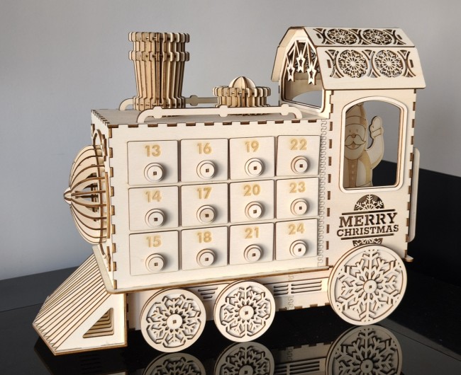 Calendrier de l’Avent train en bois – Décoration de Noël artisanale – 24 tiroirs à garnir – Calendrier réutilisable – Idée cadeau Noël famille enfantsDecorations